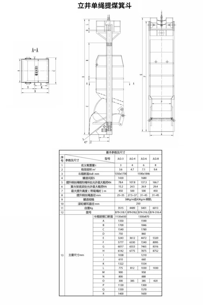 單繩箕斗基本參數(shù)及尺寸